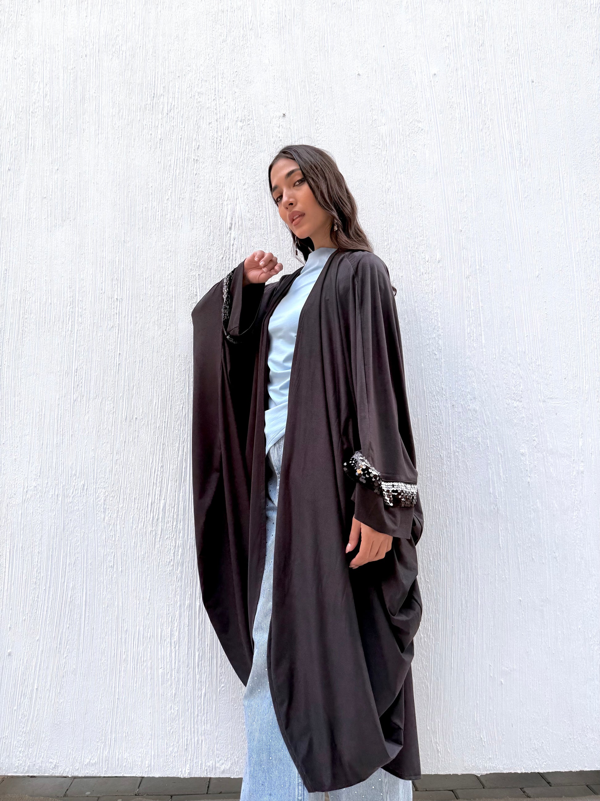 • Finished with wide sleeves accented by subtle sequin detailing for a refined statement